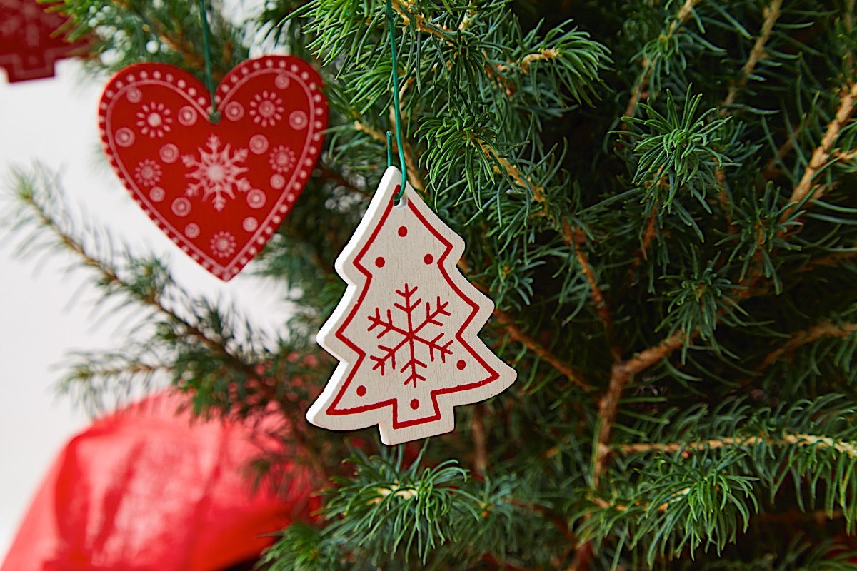 SHOP NOWThese red and white Nordic wooden decorations with a jute string, create a traditional but elegant tone for the tree. They can be used year on year and make a popular and attractive choice.