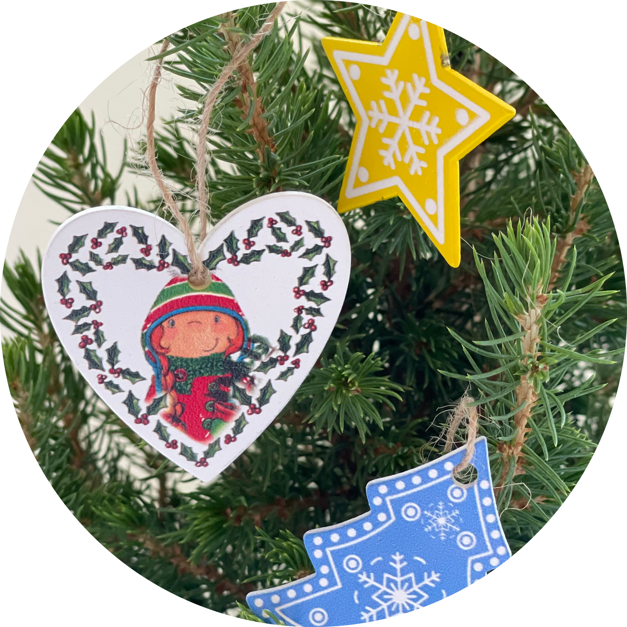 These coloured wooden decorations come with their very own Holly Berry decoration too!