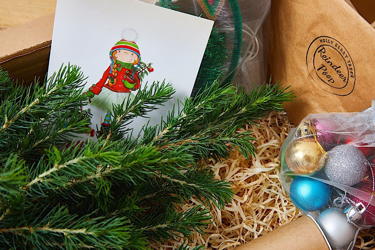 Every tree comes with battery operated lights, reindeer poop (compost), a star and a magical book - 'A Year in the Life of a Holly Berry Tree' that shares the story of Holly Berry and her trees which educates and delights with it's wonderful illustrations. All you need to do is choose which hanging decorations between felt, wooden or baubles!